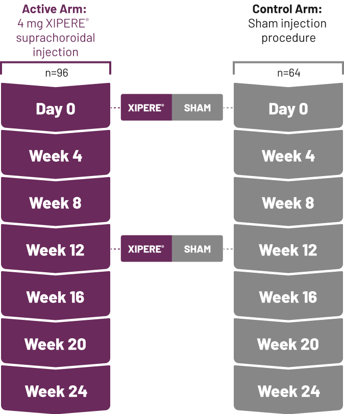 2.XIPERE® [prescribing information]. Alpharetta, GA: Clearside Biomedical, Inc.